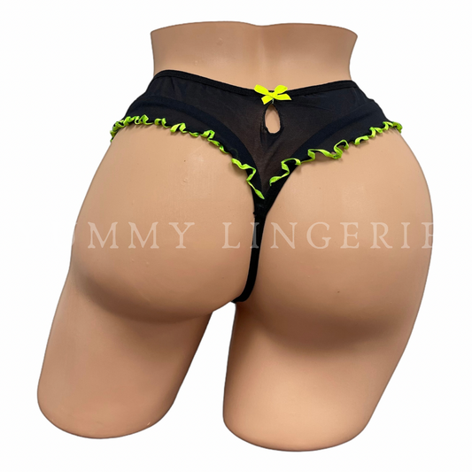 Orange Embroidered Butterfly Thong With Rhinestones- Crotchless